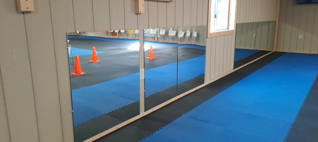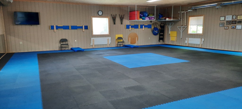 The training and healing barn is 40′ x 50′. It has many features including heat, AC, plumbing and matted flooring. Our healing room has a massage table, healing Reiki crystals and a relaxing atmosphere. There is a fenced in dog yard or you can take them for a walk on our trails.